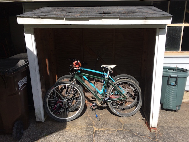 As much as I would like to keep all of the BWN bike stable in the house, for reasons of room and practicality, it just didn’t work. The kids ride their bikes to school most days and as such, need quick and easy access to their bikes without having to huck them up out of the basement every morning. We have a bike shed to keep them out of the weather and up until a couple of years ago, we just tucked them in their and really didn’t stress about locking them up.