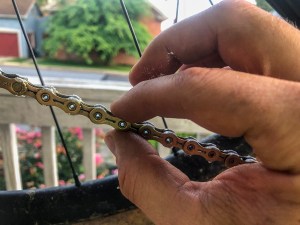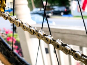 Before we go any further, I do want to highlight something. When lubing a chain, you are mainly trying to get the lubricant into the rollers of the chain. This is where the chain contacts the drivetrain under normal load (not shifting) and chain wear, or stretch, happens over time at the pins that hold everything together. Anywhere else that you lube, you are basically just inviting contamination. A trick I learned from former road and cyclocross pro Jessica Cutler was to drip one drop of lube on each roller. Yes, it is time consuming, but it doesn’t waste lube and it keeps your drivetrain cleaner, while focusing the lube where it needs to go.