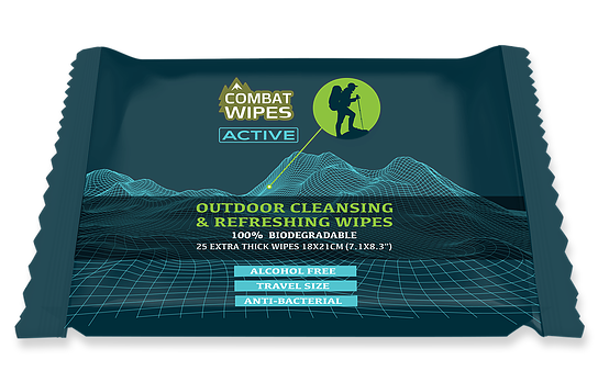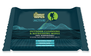 Combat Wipes, a new product developed by a group ex-military elite soldiers who love the outdoors, are earth-friendly and 100% biodegradable, free of alcohol and contain aloe, Vitamin E and an antibacterial formula to protect your skin.