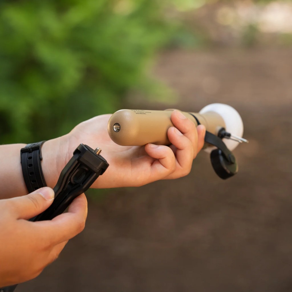 Like most tent or camping lanterns, its brightness is adjustable, making it suitable for everything from ‘in-tent’ illumination to lighting up most of an entire campsite. With both a tripod and a hanging loop, it’s able to be used a number of ways. Nestout’s battery units (depending on size) provide anywhere from 13 to 70 hours of lighting, and the battery units can also be paired with other accessories like fans.