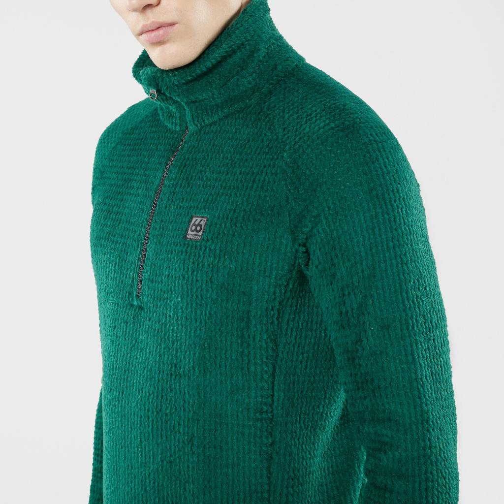 The 66°North Hrannar Alpha Zipneck is a half-zip athletic fleece for men featuring a subtle texture and an elevated collar that give it a highly functional yet refined look. It also provides a dynamic alternative to traditional insulators with its ribbed texture adding sophistication without compromising function.